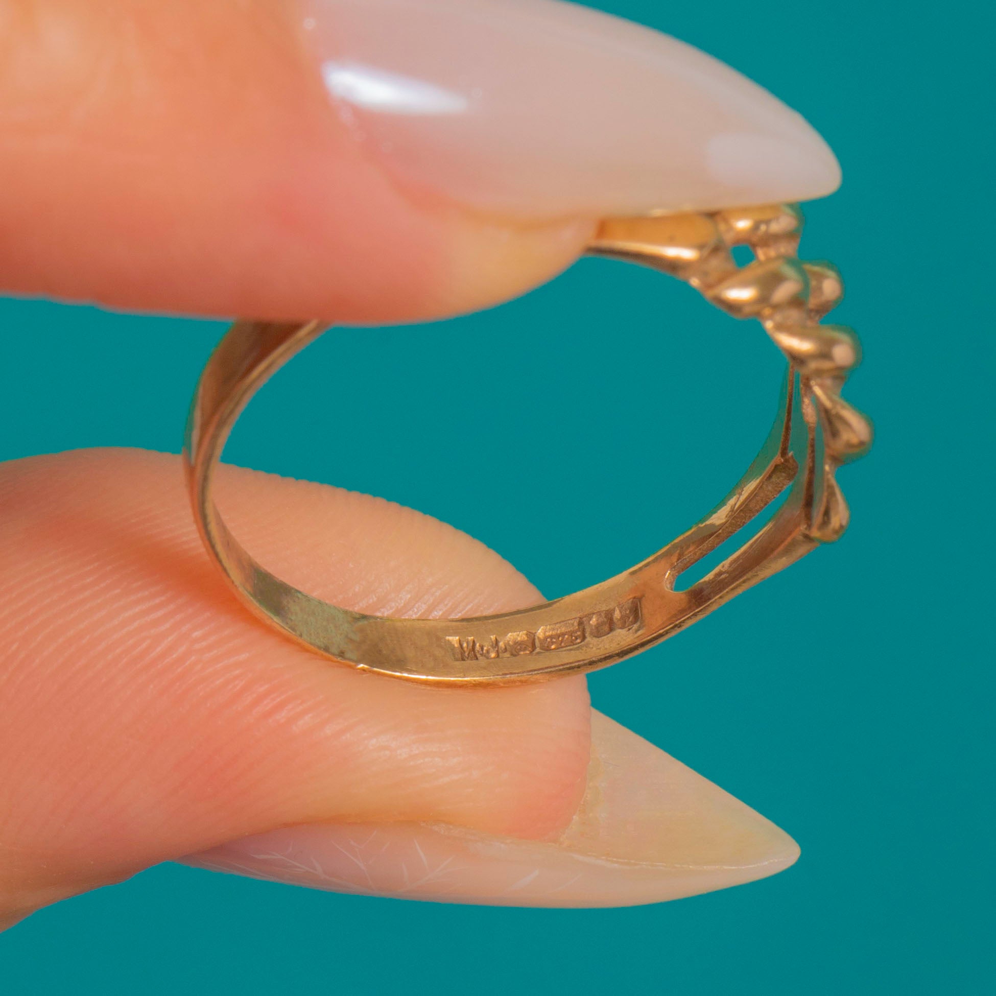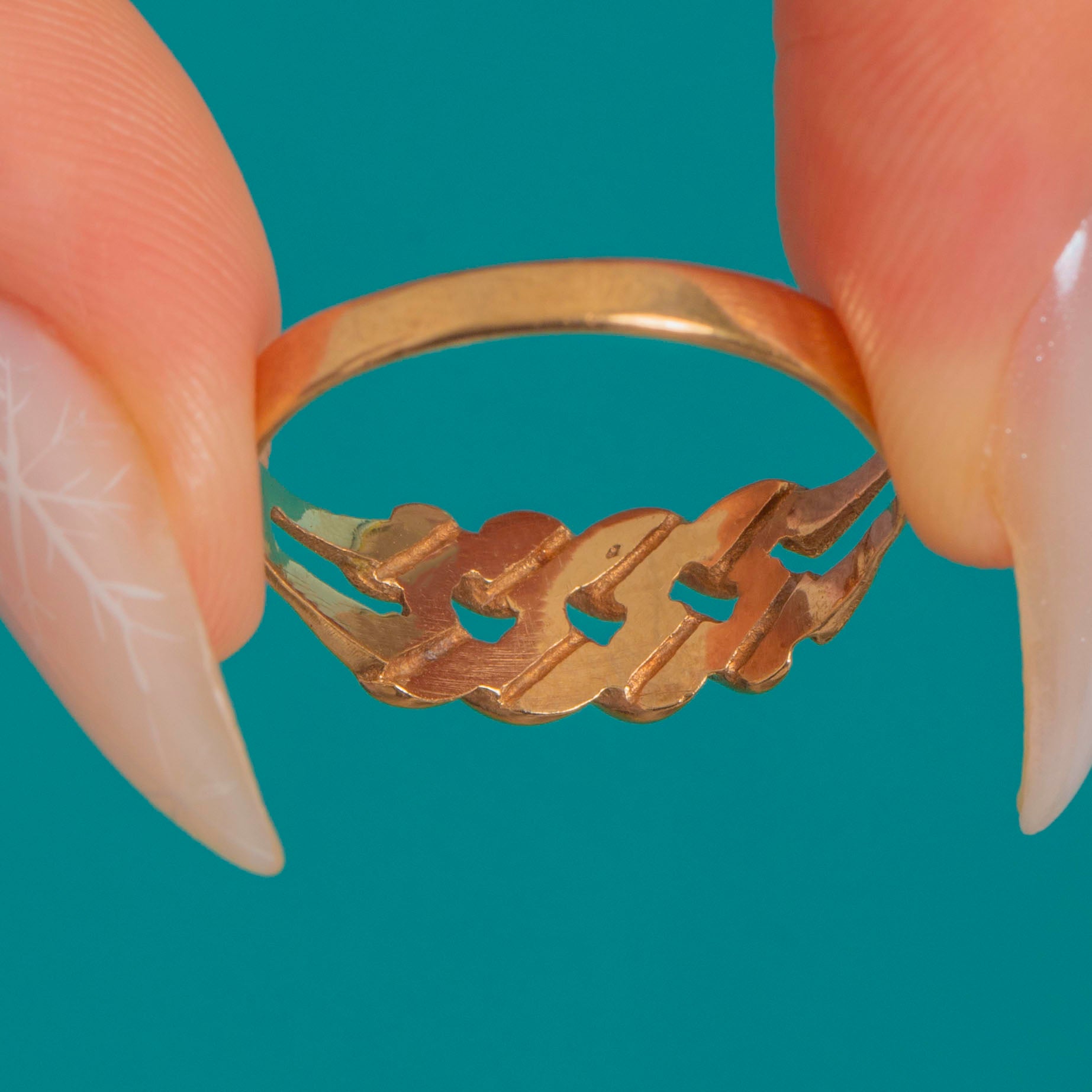 Hallmarked in London for 1970, it captures the minimalist, chain-inspired allure of the classic Keeper motif in warm 9ct Gold. Stone-free and refined, it’s a chic staple that adds subtle dimension and glow to any ring stack.