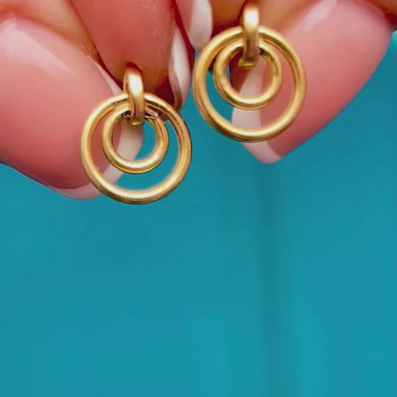 Add a subtle splash of Gold into your daily attire with these Vintage 9ct Gold mini hoop drop earrings! Comprised of two perfectly formed Gold hoops that sit snug against the lobe, the beauty of these Vintage Gold earrings is in the simplicity. These 9ct Gokd hoops are perfect for pairing with any of your other Gold goodies.
