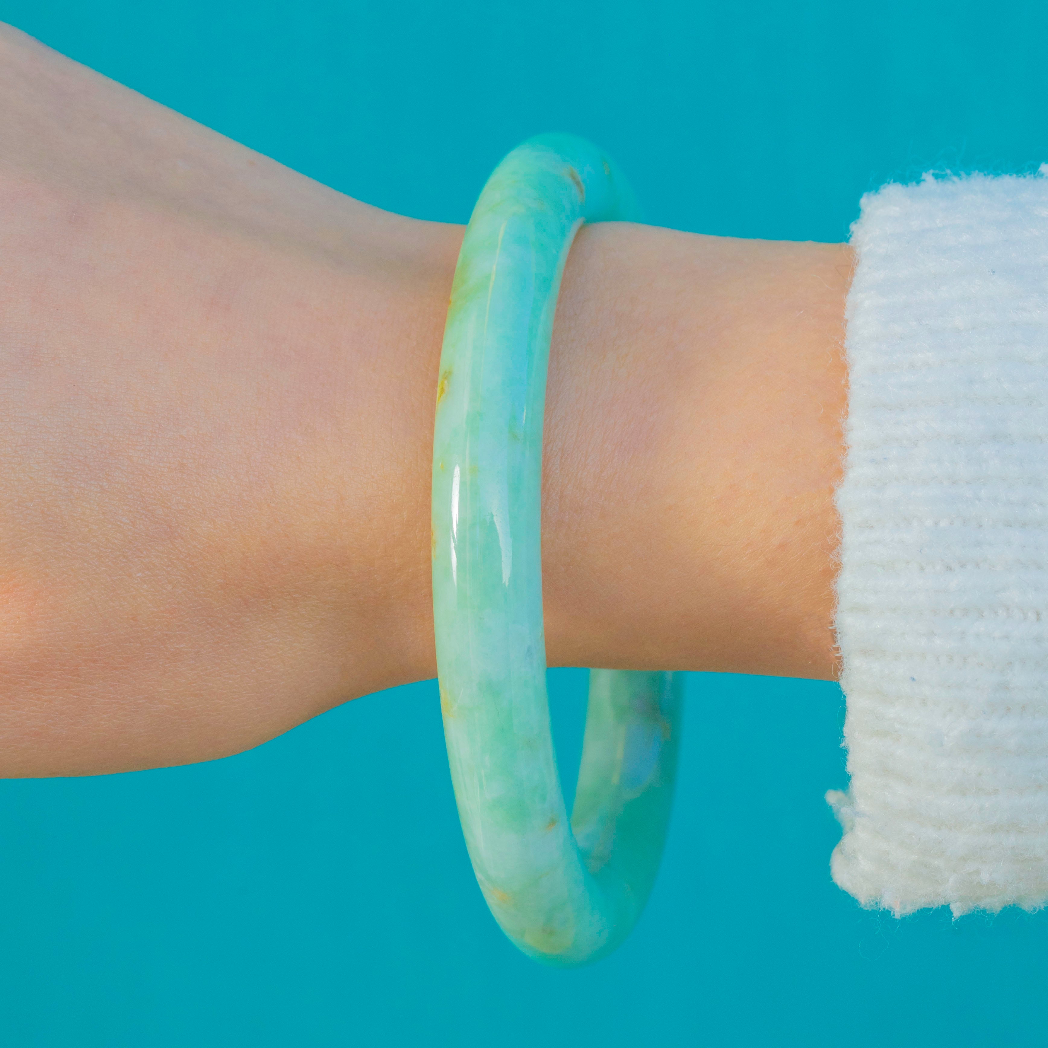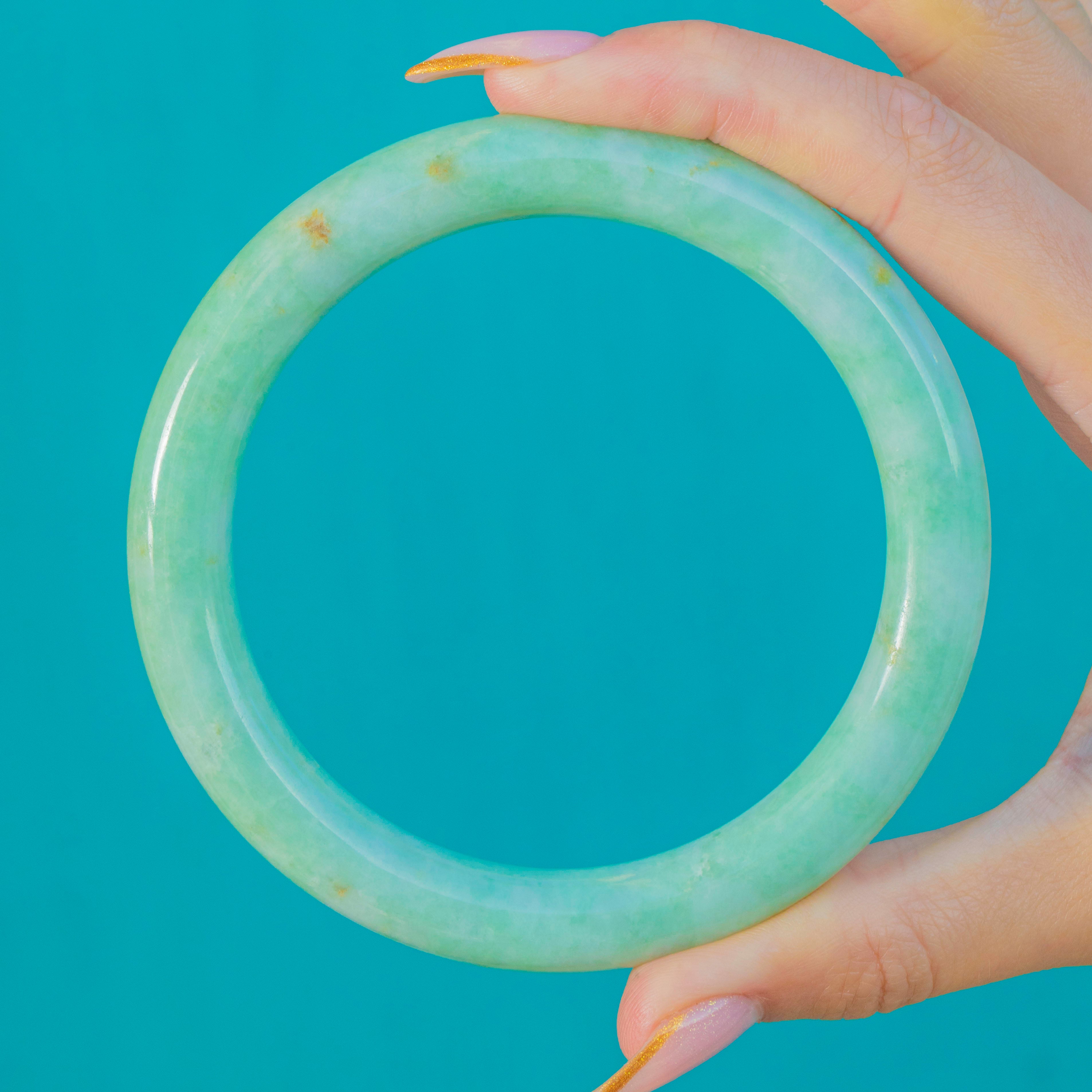Timeless, calming and symbolic of protection and harmony, this is a gorgeous example of a traditional Jade bangle with excellent presence and wearability.