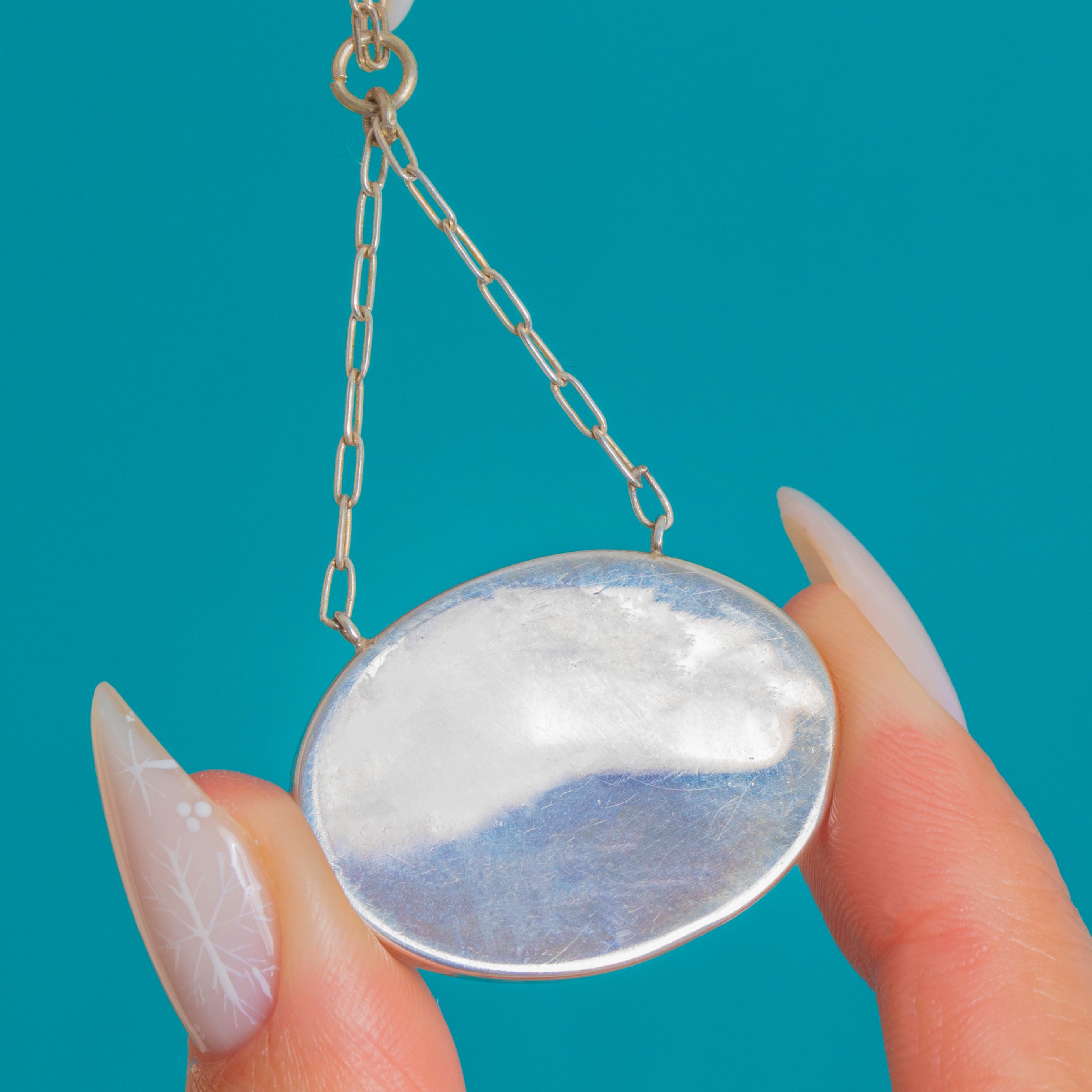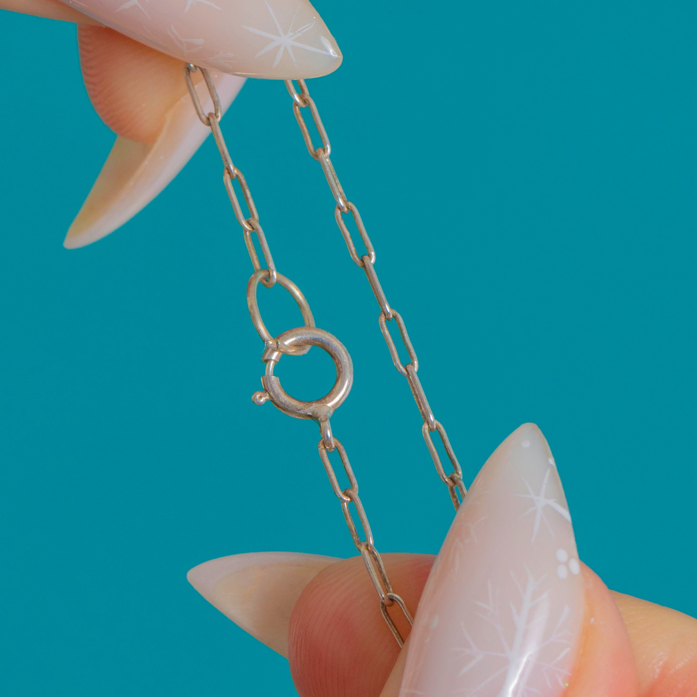 Suspended from a fine paperclip-link chain with a neat Y-drop and spring ring clasp, it blends whimsy with elegance for everyday wear. The colours remain crisp and lively, while the subtle patina of the Silver adds that soft, time-earned glow collectors adore.