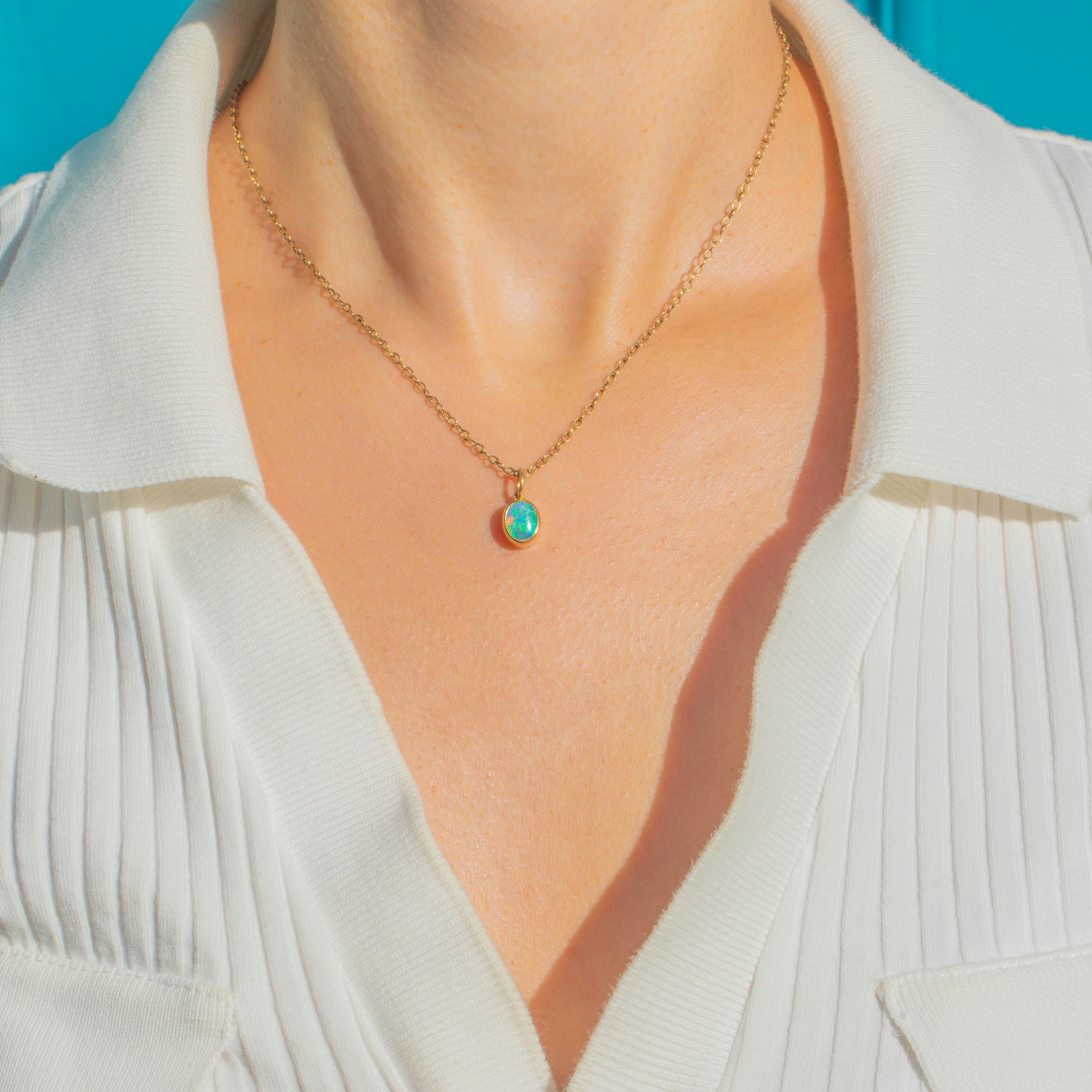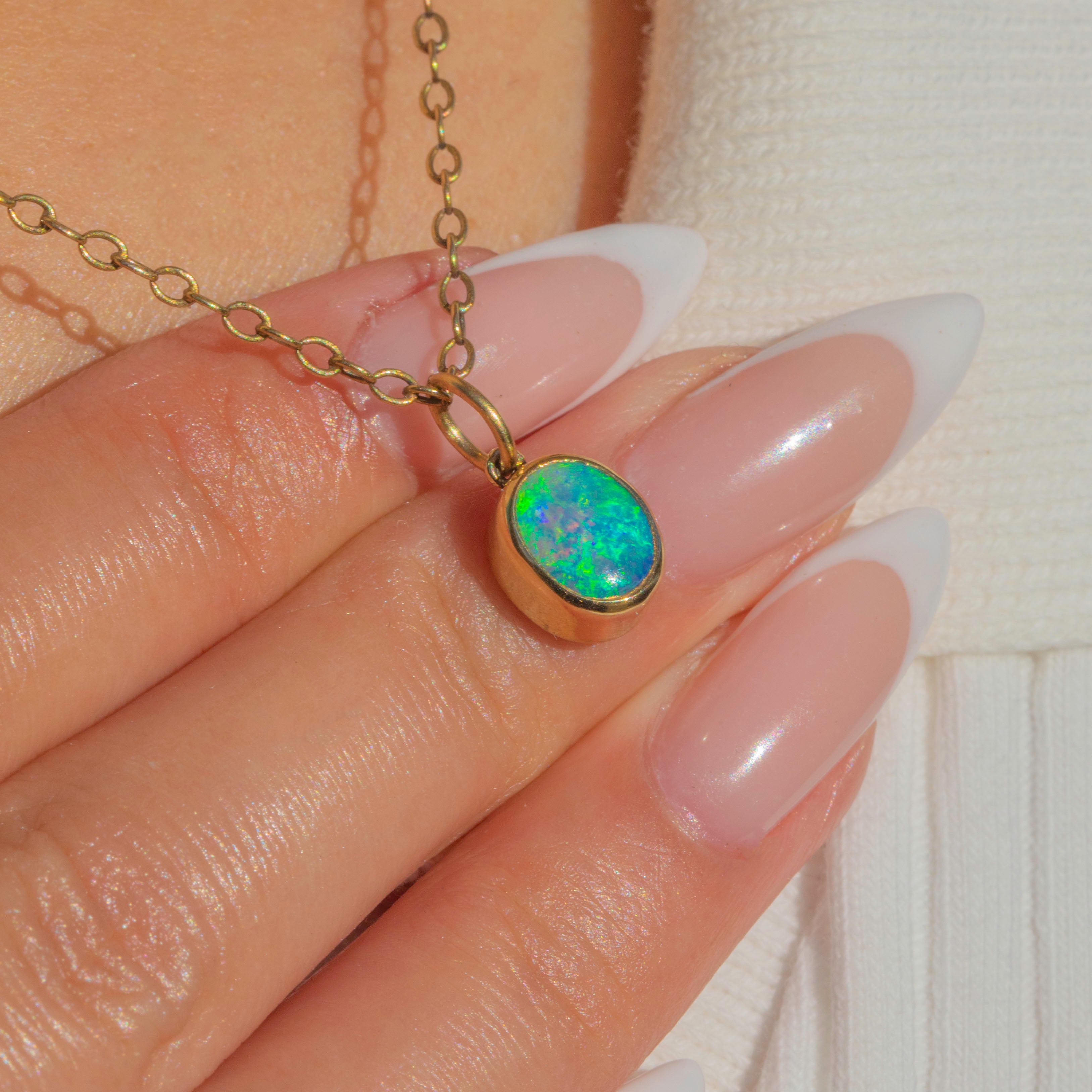 Vivid 18ct Gold Bezel Set Opal Charm